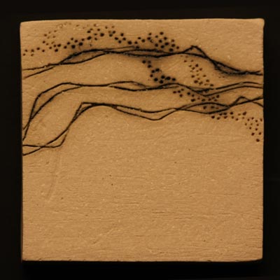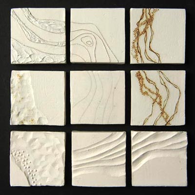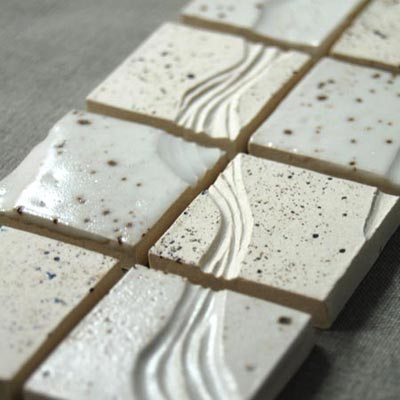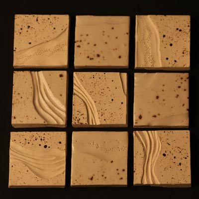 Unglazed stoneware tiles with carved and incised decoration