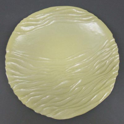 Glazed stoneware plate with carved ripple decoration -