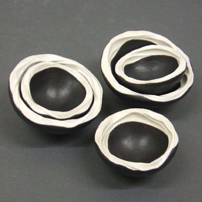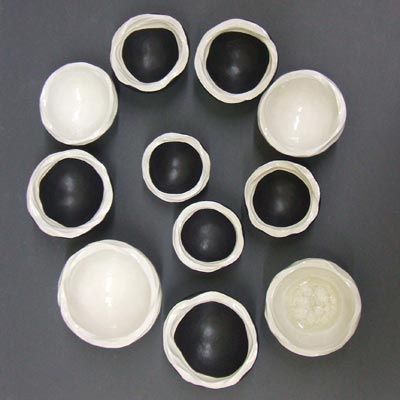 Stacked and balanced stoneware wobble pots -